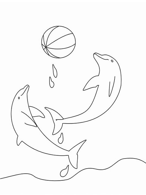 Delfiner leker med ball Fargeleggingsside