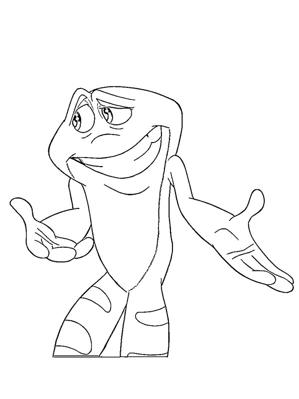 Fargelegg tegningen av Froskeprinsen Naveen nå. Eller fargelegg en av de andre flotte 7 Prinsessen og frosken-tegningene på sotefargeleggingssider.no